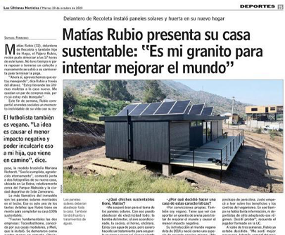 El 20 de octubre, la historia de Matías Rubio y su hogar sustentable fue la portada del diario Las Últimas Noticias. En una entrevista reveladora, el futbolista compartió su motivación para asociarse con Tecno Fast Home en este proyecto, destacando la importancia de elegir soluciones respetuosas con el medio ambiente y enfocadas en la eficiencia energética.